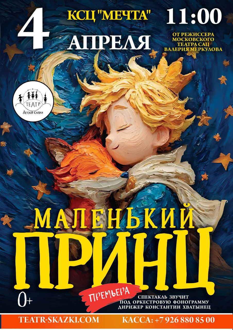 Московская премьера фэнтези-спектакля «МАЛЕНЬКИЙ ПРИНЦ» от режиссёра Московского театра Н. Сац В. Меркулова | 4 апреля 2026 | 11:00 | КСЦ МЕЧТА Афиша Купить билет